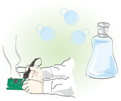 作業現場のはんだ煙や有機溶剤などのにおいは、においの元から消すことはできません。そこで、このような環境では、脱臭が重要になります。脱臭方法には次のようなものがあります。