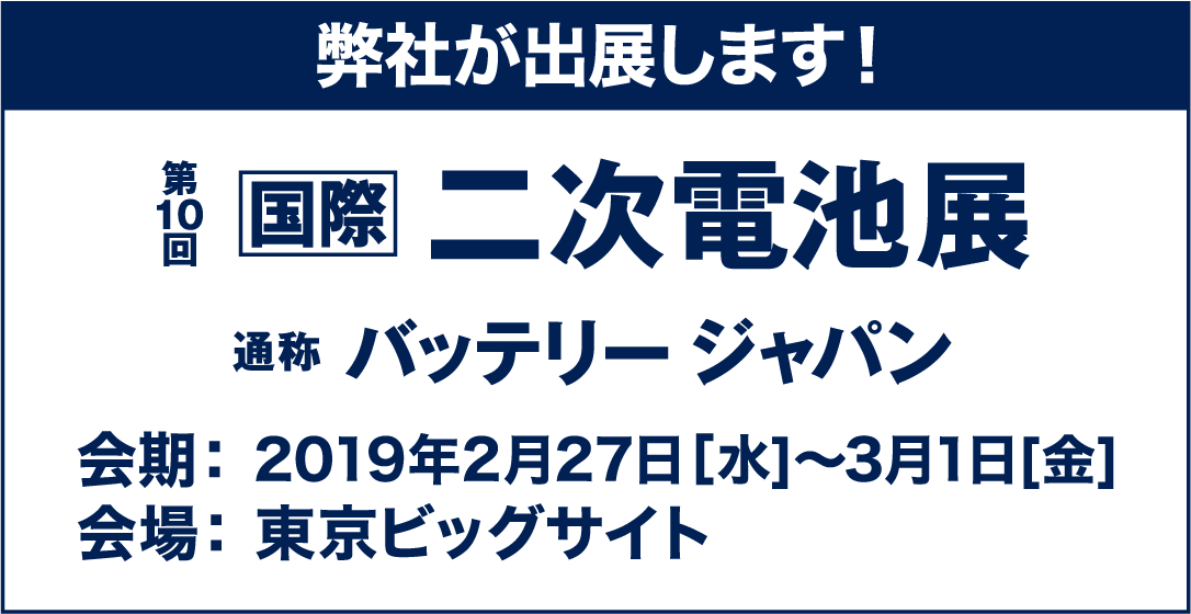 松定プレシジョンは、2月27日(水)から東京ビックサイトで行われる二次電池展(バッテリージャパン)に出展いたします。